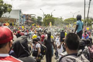 “Ya no aguantamos más”, es lo que se escuchaba el primer día de paro en las calles, mientras pancartas y consignas decían “el peor virus es el gobierno”. Así lo cuenta Edilson Monroy Machado, comunicador popular de Cali, la capital del Valle del Cauca, donde las movilizaciones han sido masivas y constantes desde el 28 de abril.