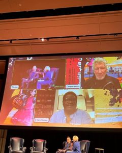 Figure 3: Plenary session hosted by Rachel Holmes featuring novelist Viet Thanh Nguyen, journalist Gary Younge, and musician Rogers Water talking about friendship and solidarity with Palestinians.